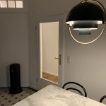 Das für die gesamte Wohnung gewählte Farbkonzept sollte auch bei der Gestaltung des Altbauflurs berücksichtigt werden. Neben den weißen Wänden und Decken, ist die gesamte Altbauwohnung mit ausgewählten Designklassikern und Erinnerungsstücken eingerichtet. Vorherrschende Farbpalette sind weiß, schwarz und Graunuancen, die mit wenigen wohldosierten Farbakzente die außergewöhnlichen Details dieser traumhaften Altbauwohnung unterstreichen sollten.